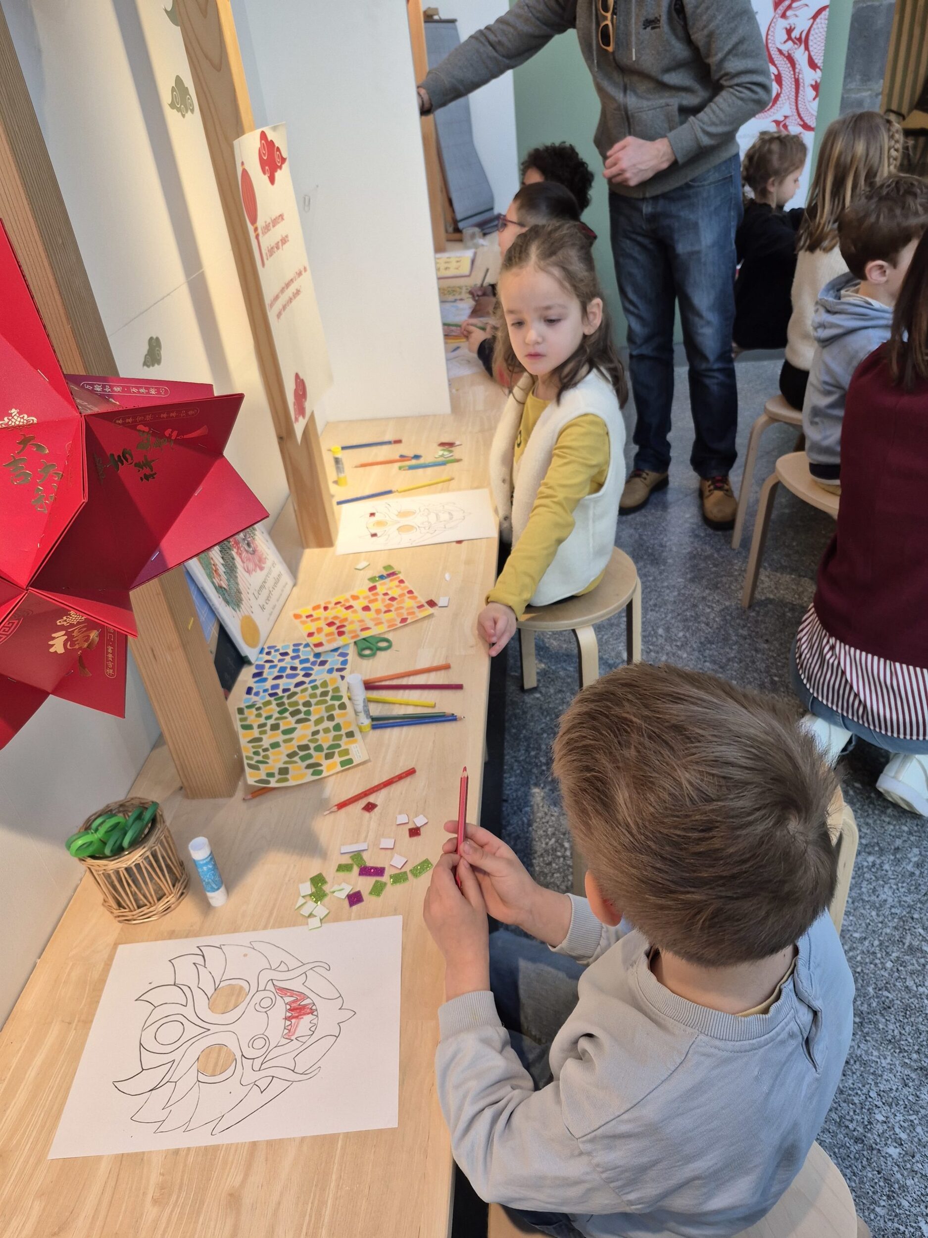 La classe de Grande et Moyenne Section de M Berthou s’est rendu au musée Roger Quillot pour profiter de l’exposition temporaire sur la Chine et d’un atelier.